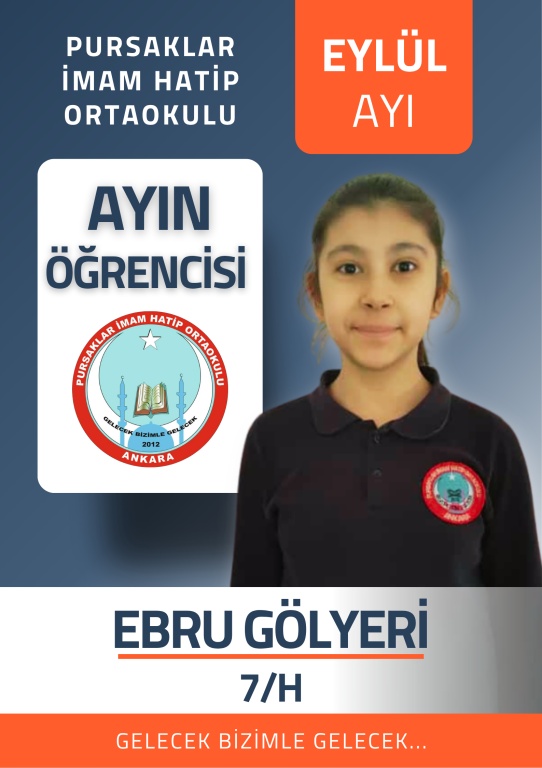 Eylül Ayı Ayın Öğrencisi 7H Sınıfından Ebru GÖLYERİ.